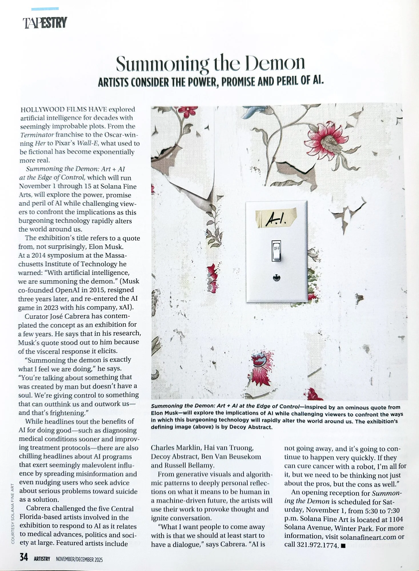 Publications Decoy Abstract ArtistryNovember | December 2025See artwork up closeSee publication Interior AppealFall 2025See artwork up closeSee publication Orlando ArtsNovember | December 2021See artwork up close